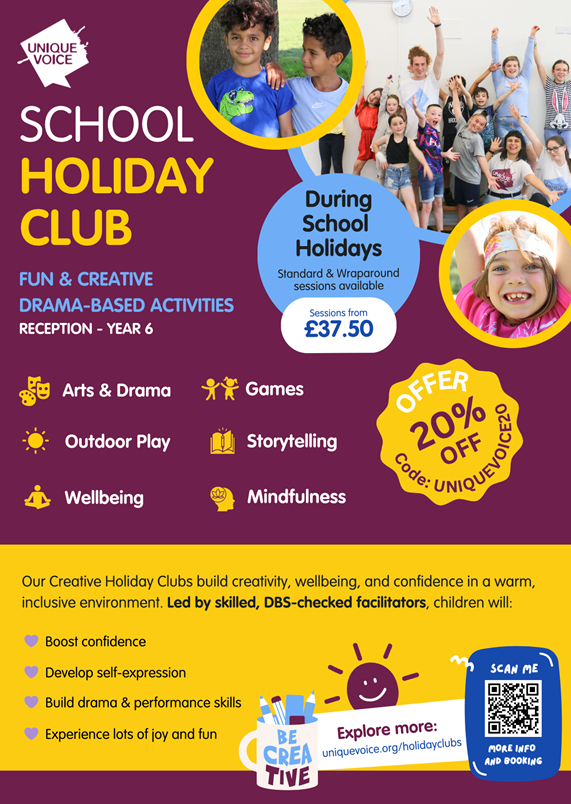 Parents/Carers can BOOK NOW via THIS LINK. Use Promo code UNIQUEVOICE20 to claim 20% off at checkout.